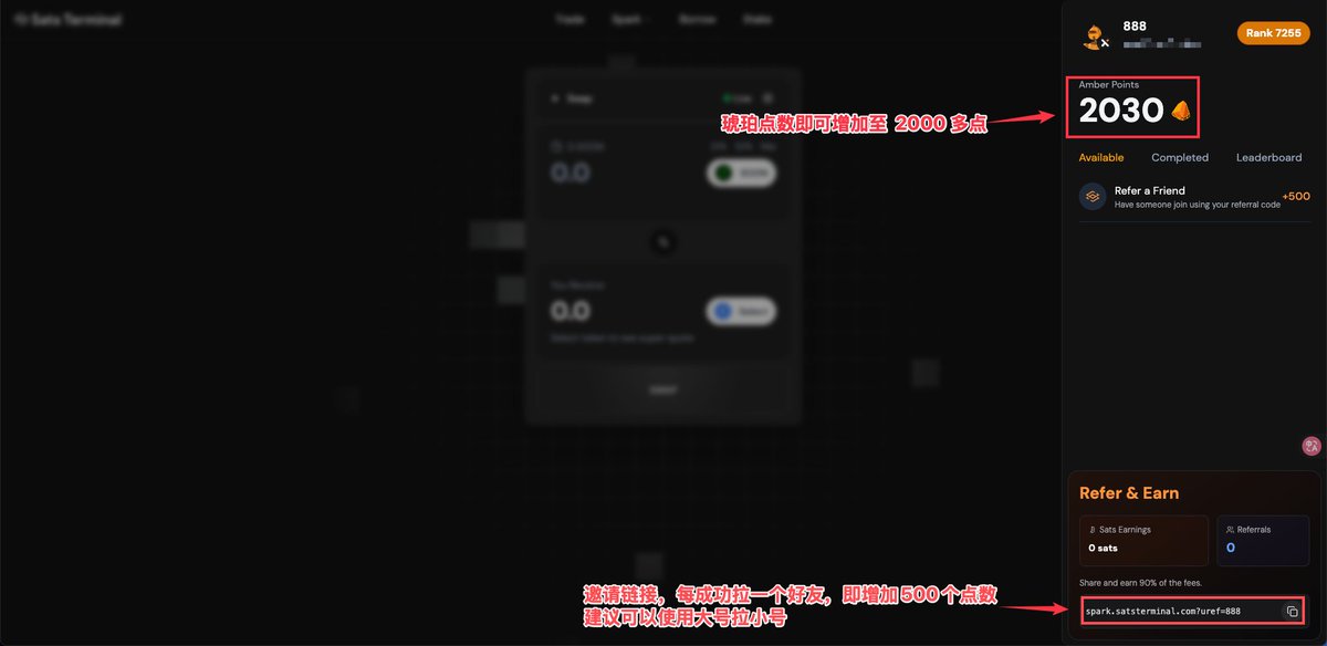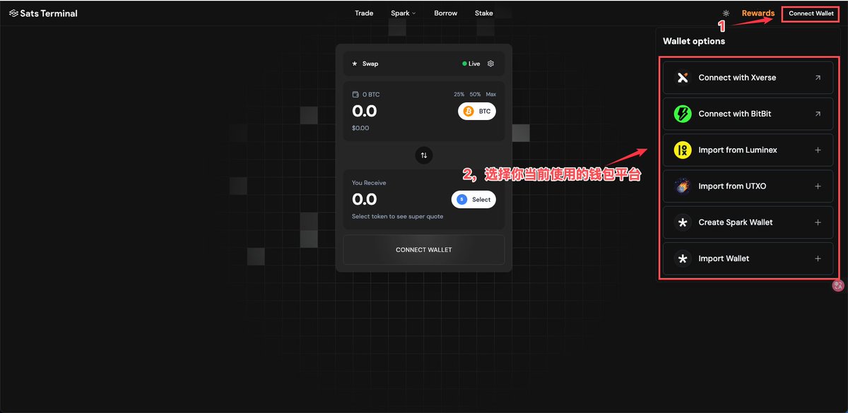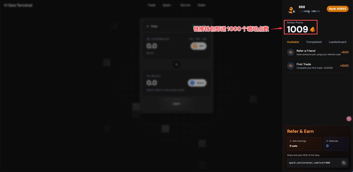 @SatsTerminal发文,宣布将 100% Spark 代币交易费用返还社区:通过推荐人交换 Spark 代币时,90% 费用归推荐人、10% 归被推荐人,并附视频展示平台 UI 界面。