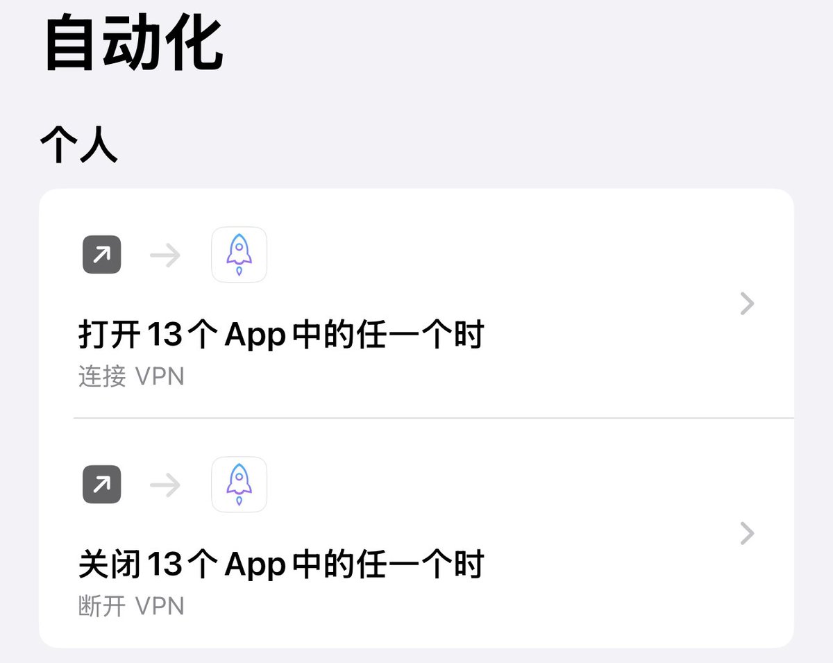 今天刷到这个邪修技能,感觉好用,就整体用了下,个人感觉远比把 科学上网 的开关放在控制中心好使,而且 App 切到后台也会触发断开。奇奇怪怪的技能又学到了🤪