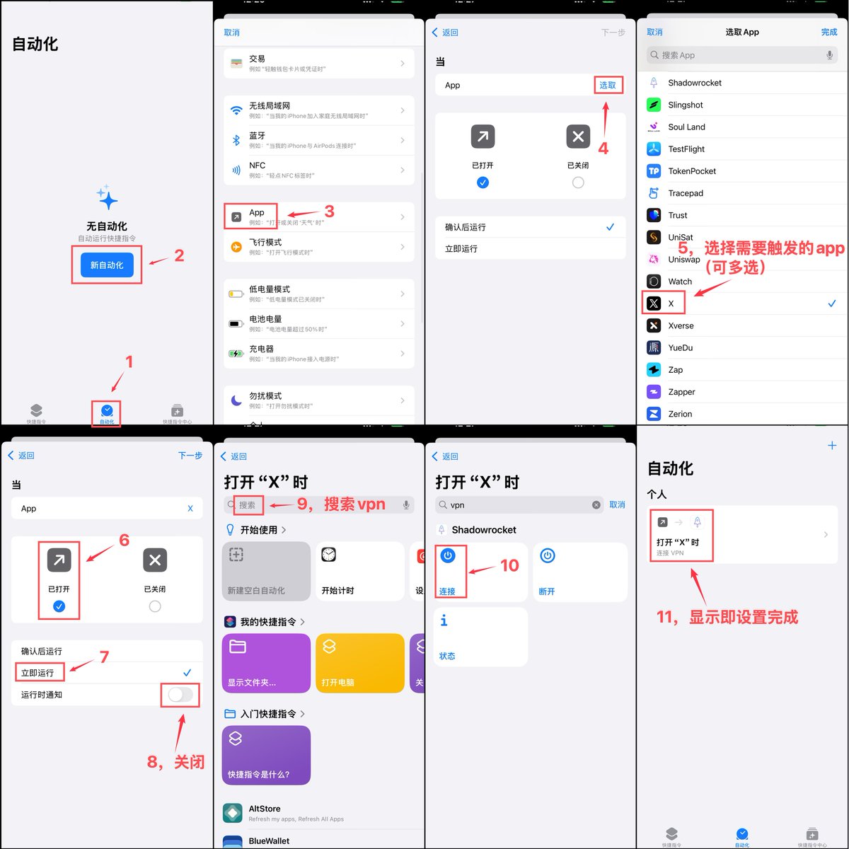 设置只需 1 分钟,手机在打开任意 App 的同时,可实现自动化 链接或断开 科学上网,解放双手!(仅限苹果手机)