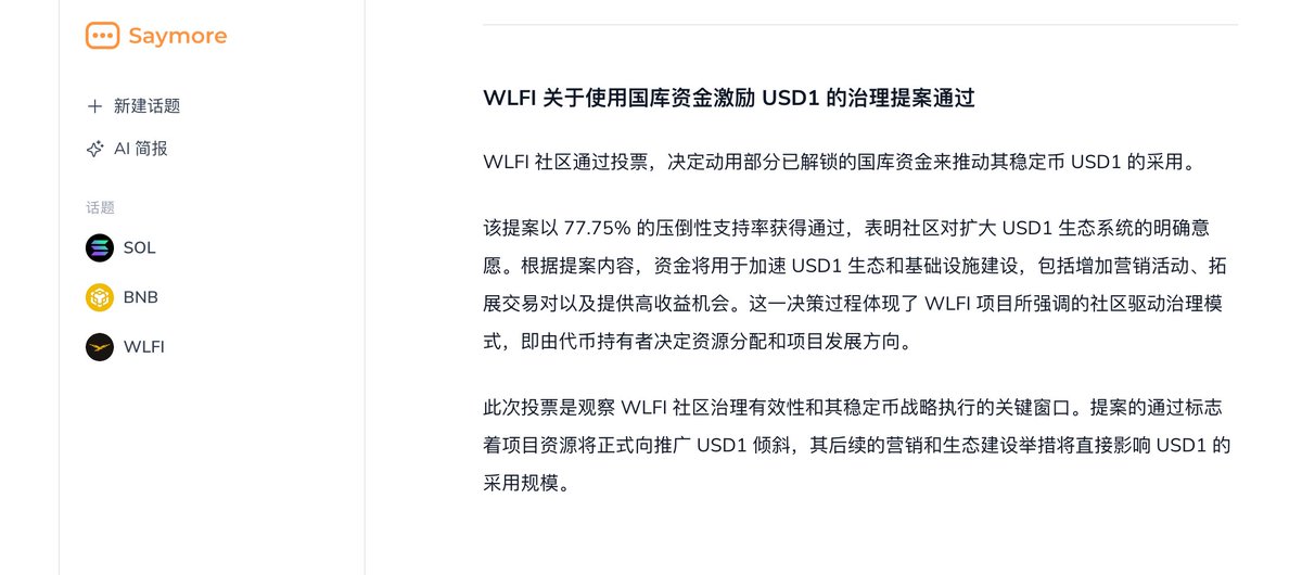 果然昨天 “WLFI 通过使用国库资金激励 USD1 的治理提案”,今天立马BTC破93000。