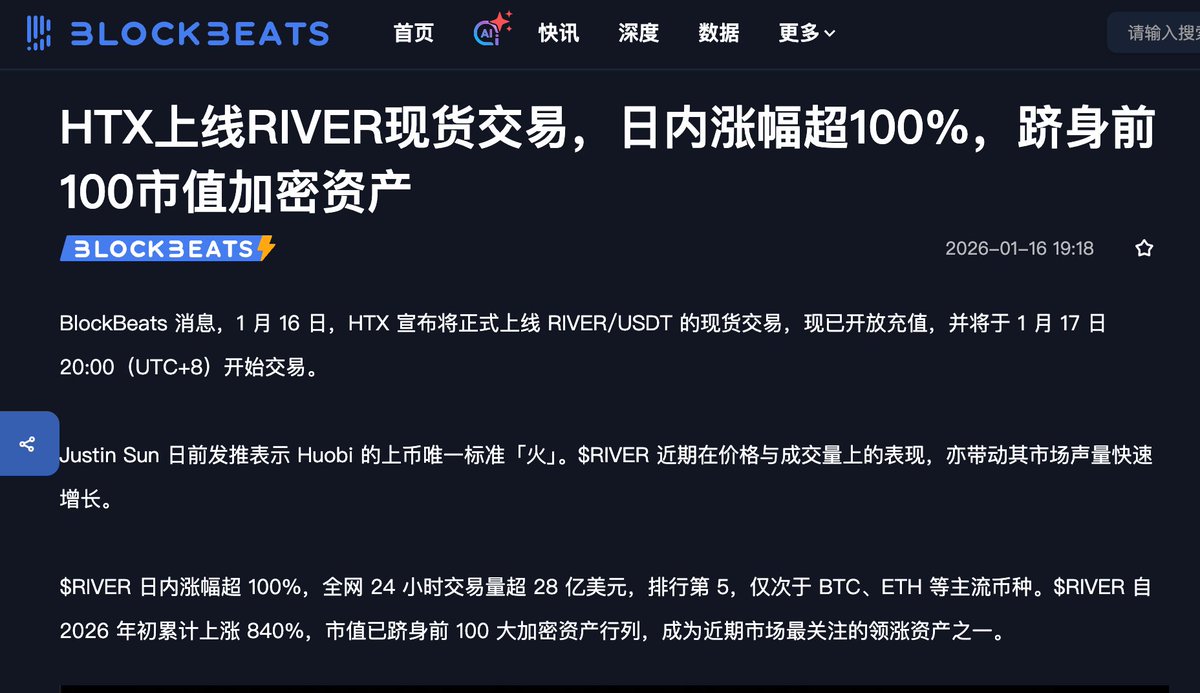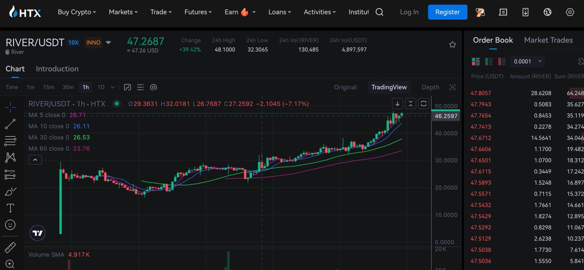 $RIVER 现货新增 HTX 一站,给点力上更多 top cex 现货,让质押的兄弟们也被动发财一波吧