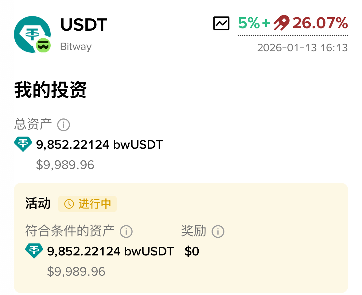 Bitway 五分钟结束战斗,时间上还是比较宽裕,目前 2000wu 池子年化 apy 在 31%(5%basic+26%激励)