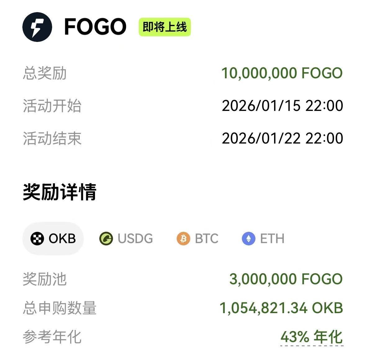 OKX闪赚上了 $FOGO 理财,对比上期三连项目,在 $OKB 大饼二饼基础上新增 $USDG