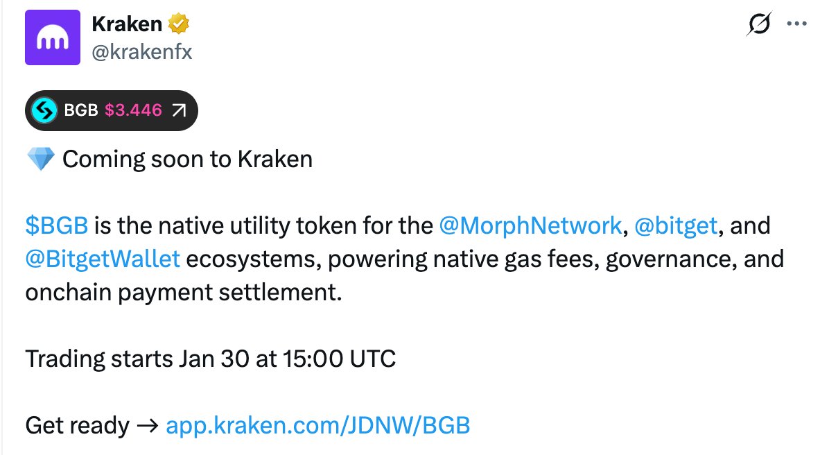 $BGB 继上个月上韩所 Coinone 后即将上线美所海妖 Kraken ,这波属于实打实利好
