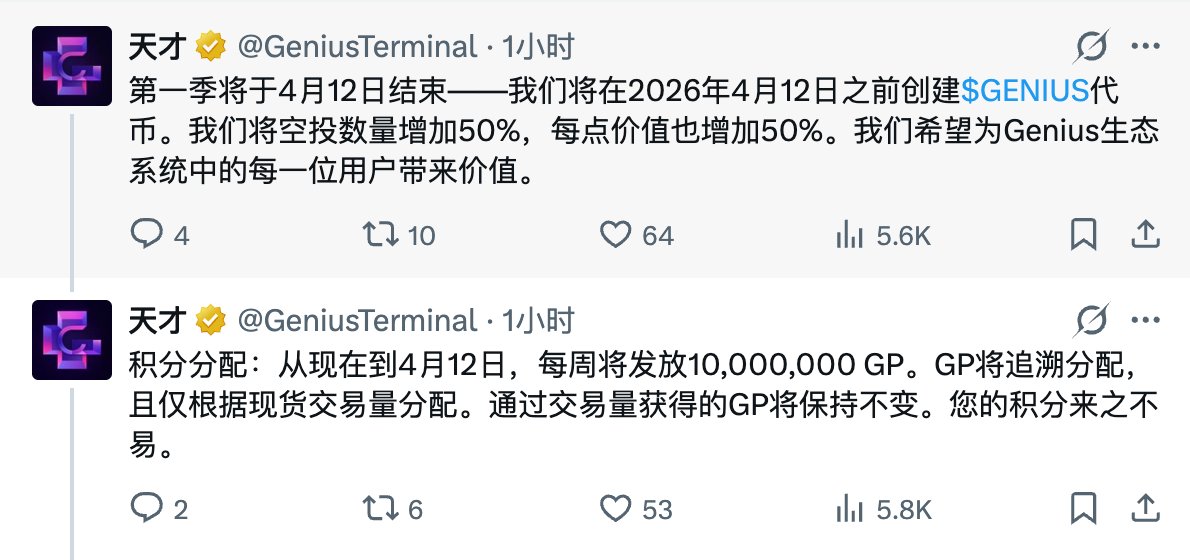 看了下 @GeniusTerminal 新发布的空投积分白皮书,直接把基于推荐 GP 奖励削减收回了?改成现金推荐奖励,KOL邀请接下来不再是绝对优势