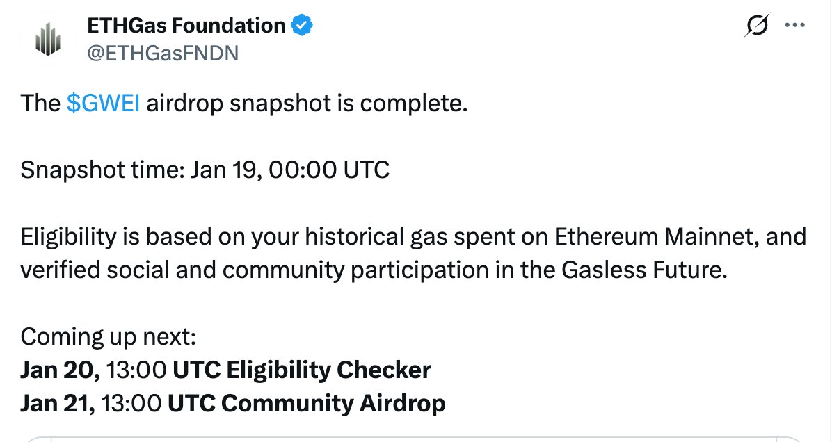 $GWEI 这项目节奏搞挺快,今天快照明天查询后天开领取,基金会发了查询但需要明天开放查询 Button ,可以收藏一下链接蹲查询领取