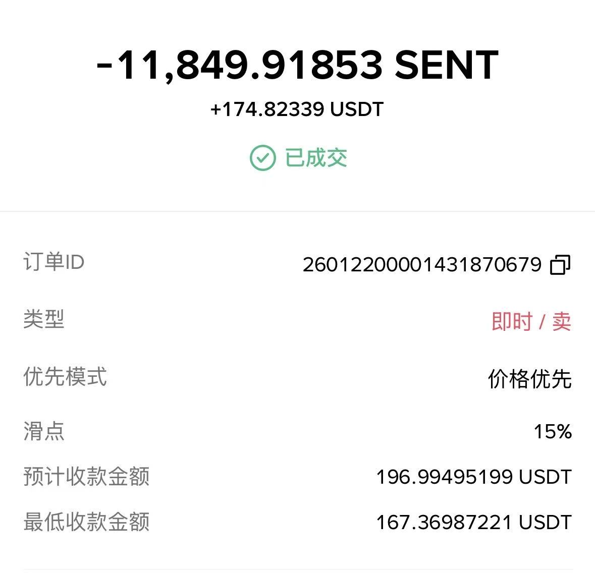 $SENT 打新成本浮动在 $120~130,扣掉成本到手 $50u 猪脚饭
