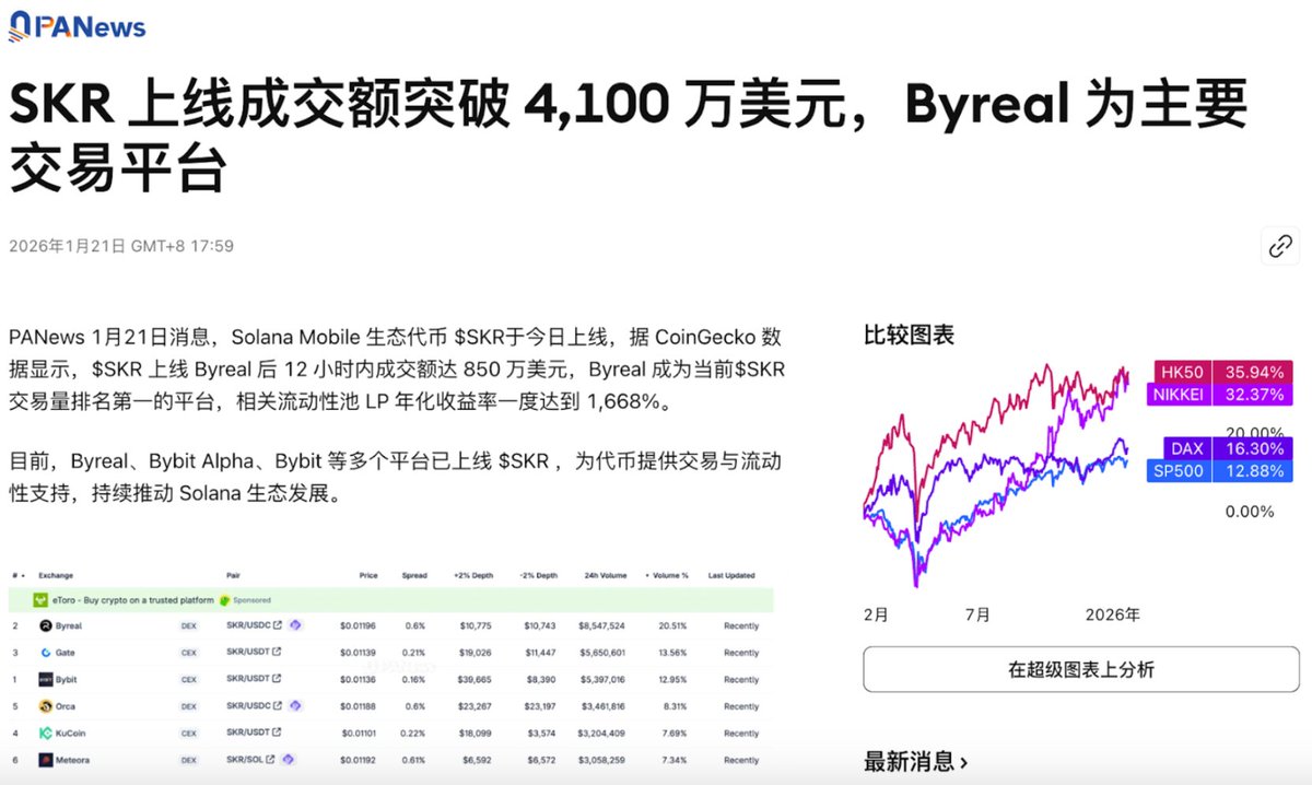 以 $SKR 为例, @byreal_io 上线当天成交量干到 4100 万美金,深度碾压了不少老牌cex