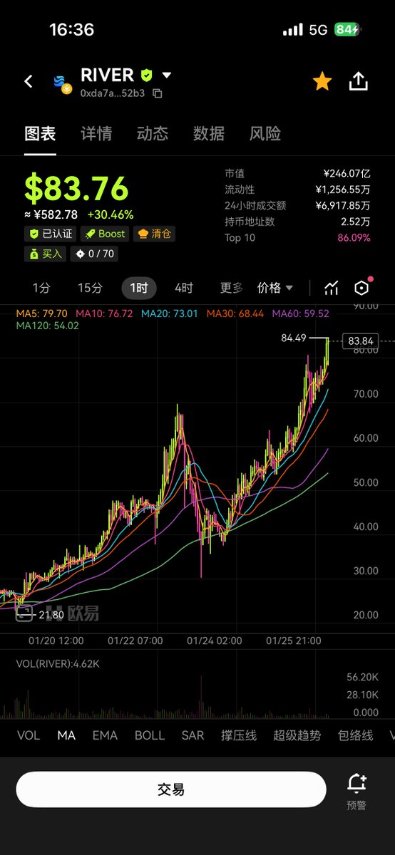 昨天 $RIVER 爆拉到 $42.55u ,按这价格卖飞不止10x