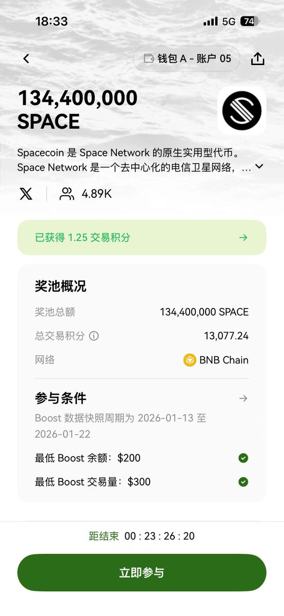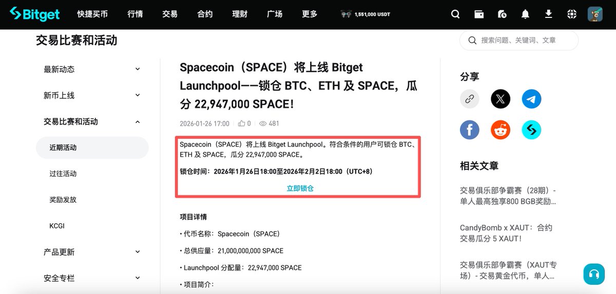没吃上 Spacecoin Campaign 的,可以看看 Bitget 这边