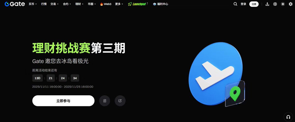 Gate余币宝冬日挑战赛,拥有1000万就可以白嫖冰岛双人 6 日游,记得先完成报名,解锁对应奖励