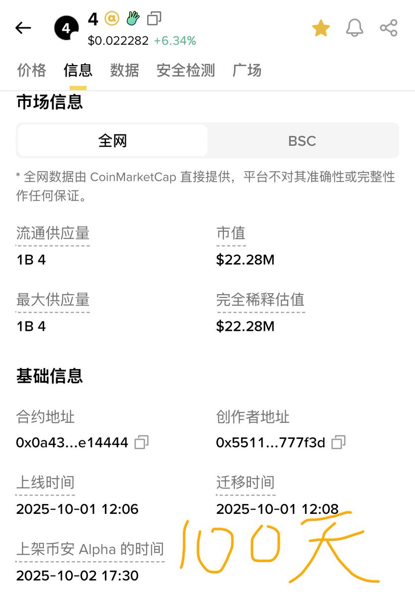 却忘了10月份的BSC超级牛市的导火索就是“4”,黑客盗了@BNBCHAIN 官推,发了4的CA,引发了后面一系列的连锁反应