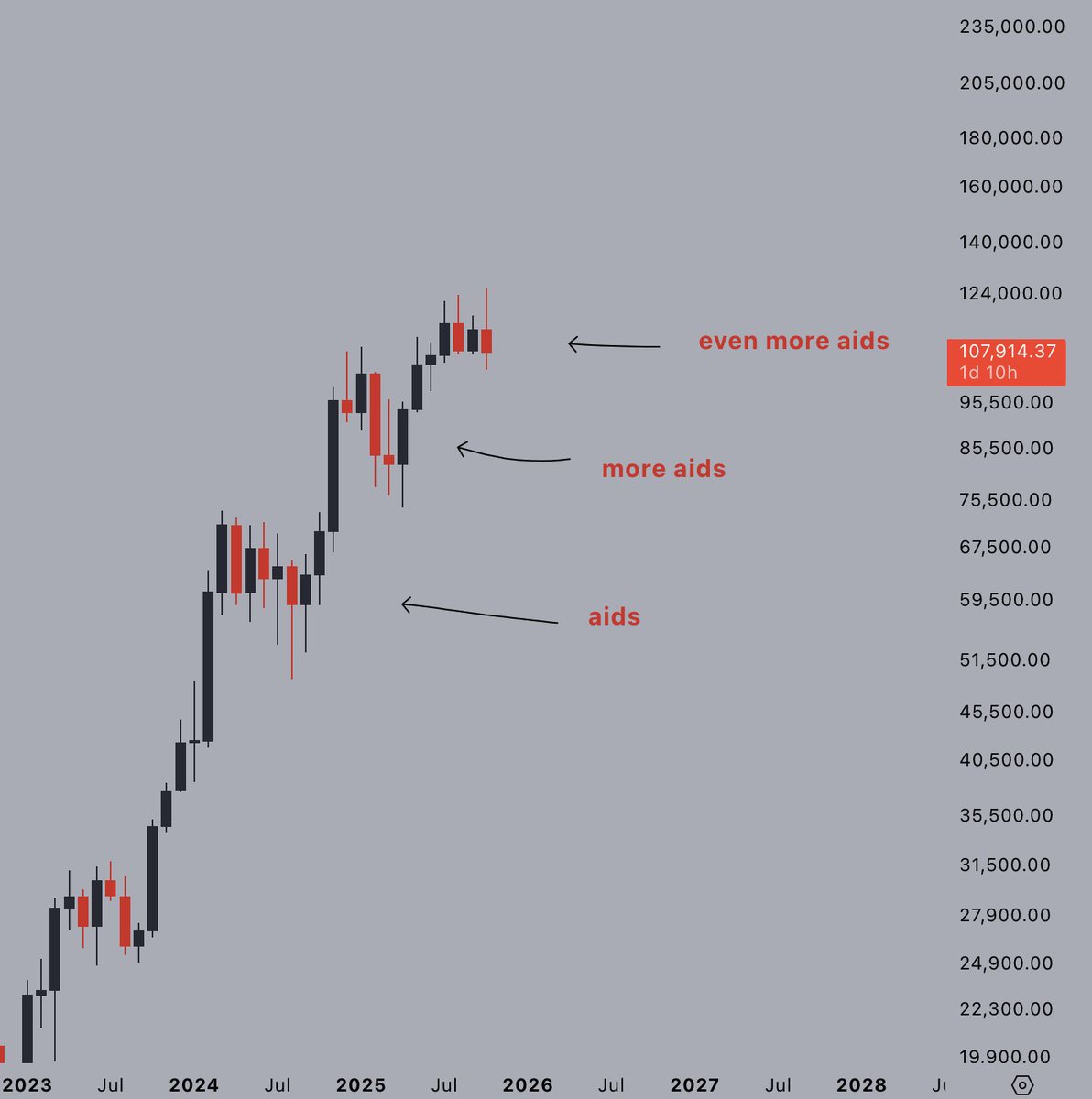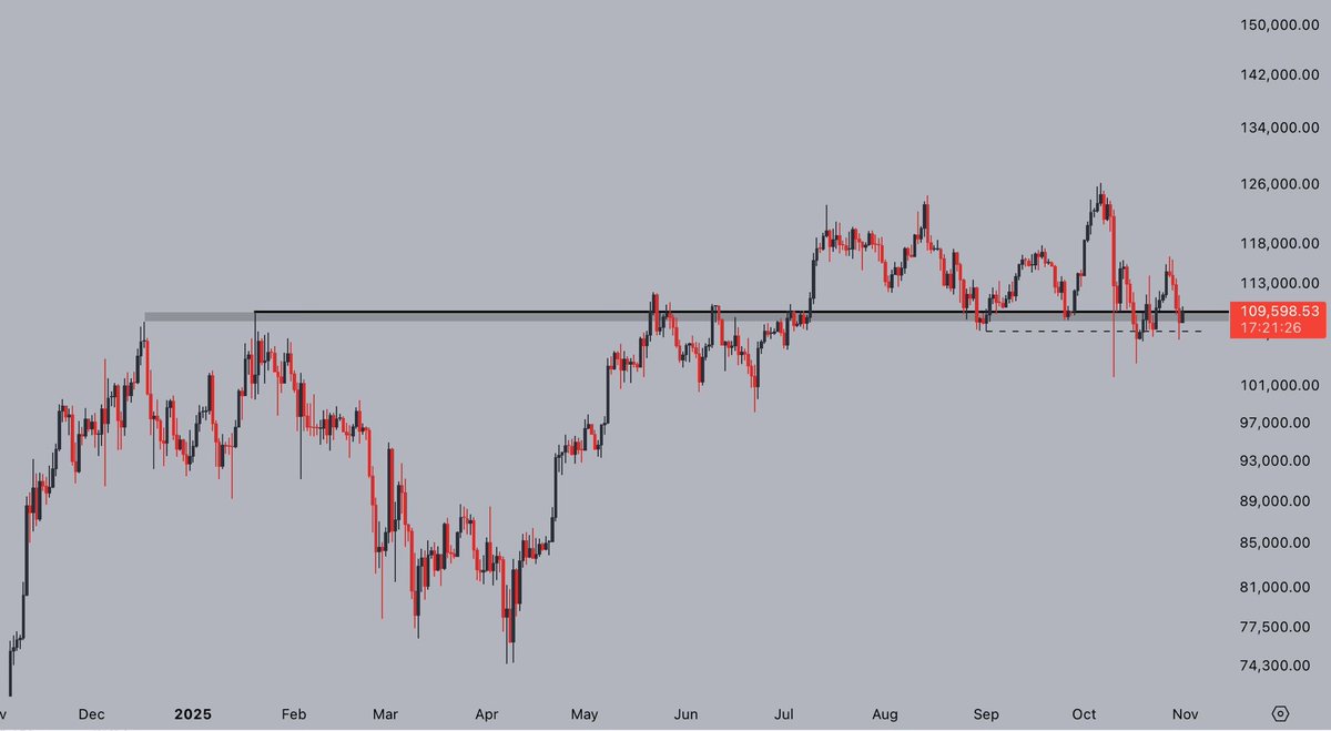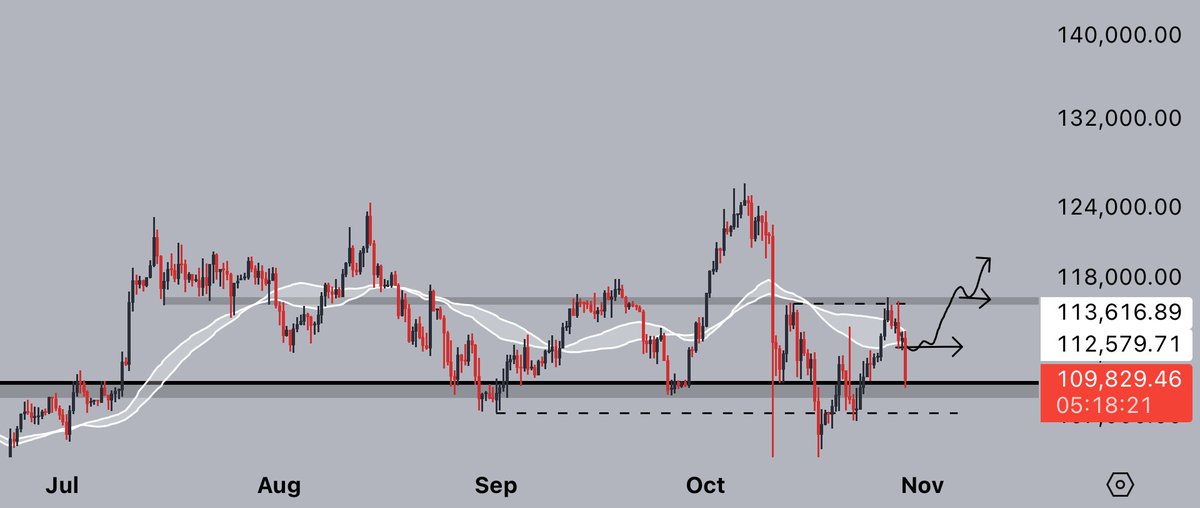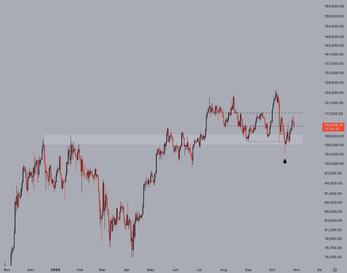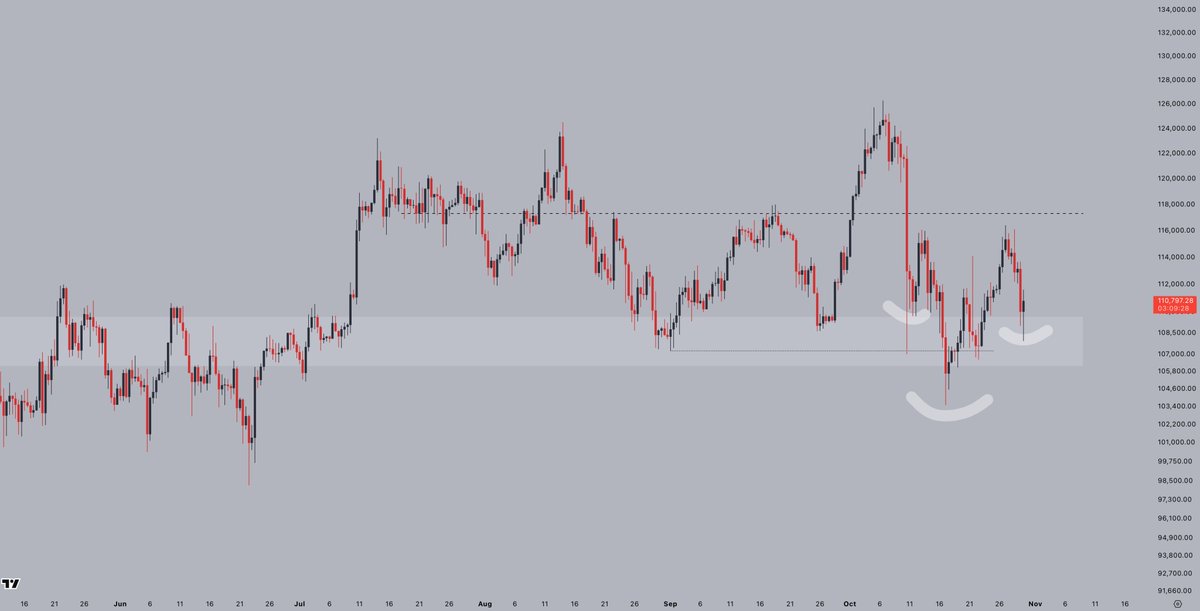 Rates cut by 25bps, prices pushing into the $110k support area again.