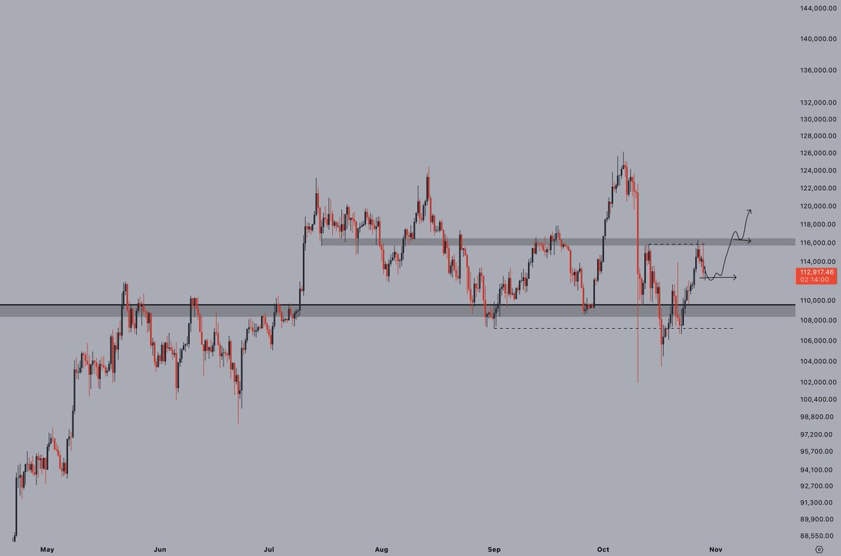 #Bitcoin is still moving to plan, slowly but surely forming a higher low in the $112k region as discussed this week.