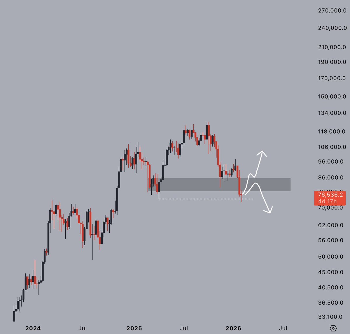 Wick those 2025 lows and $BTC gets to have some more fun, if we just bleed through them we're likely going for extended hibernation.