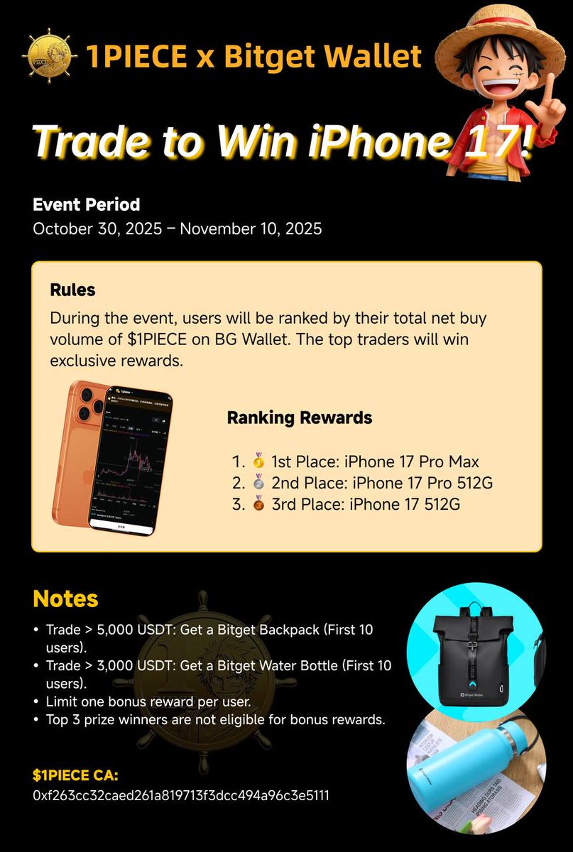 在Bitget钱包上交易1PIECE赢取iPhone17