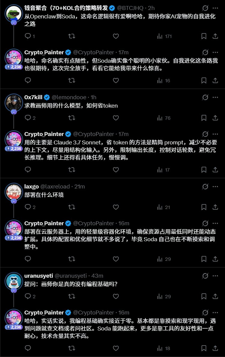 至于为什么要用Grok,除了X上的适应性更好以外,还有一点就是这样做到了隔离,所以与我本机相关的交互,都由Gemini3Pro和OpenClaw完成,但到了和外面人交流的时候,就需要让外包AI来干活了。