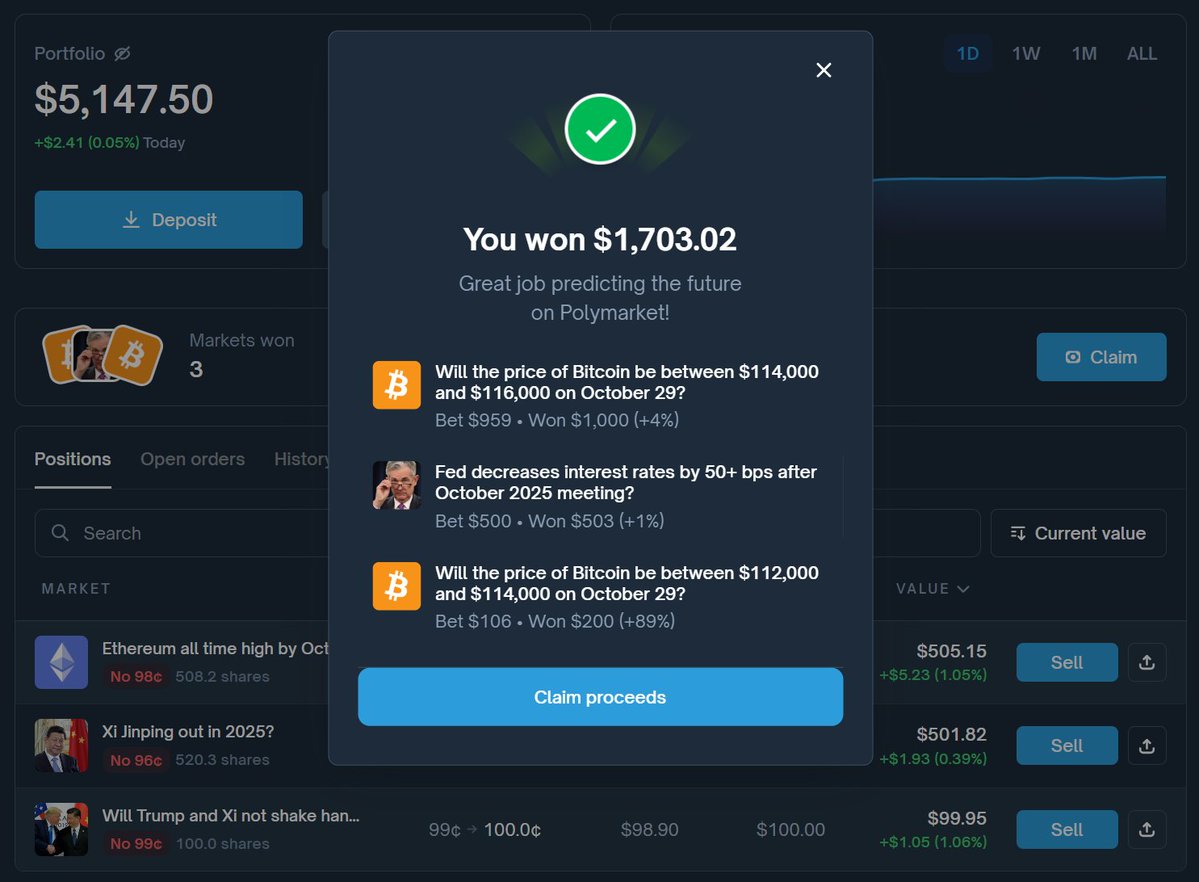其实吧,小资金买低概率事件和大资金买高概率事件在 @Polymarket 上面并没有什么区别...