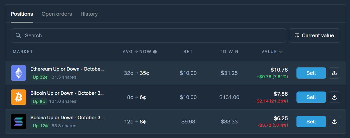 二级的空单平了,但 @Polymarket 这边变相开了两个空单,赌晚上12:00点前BTC会低于112k,没想到居然在最后半个小时跌下去了...