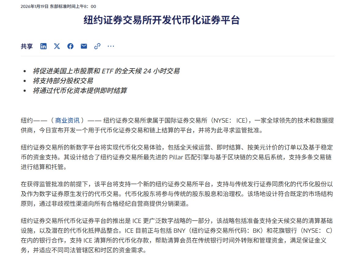 纽交所推出的这个平台,核心术语叫“代币化证券”