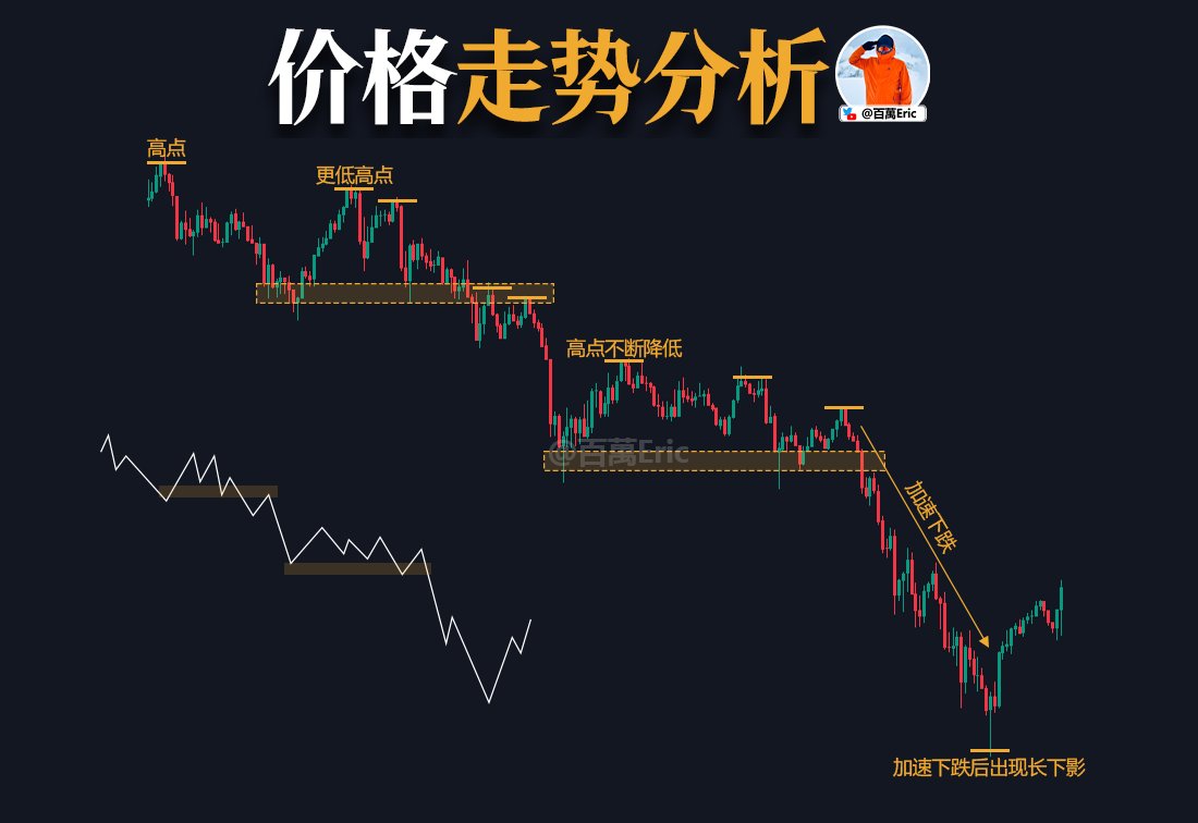 当价格高低点不断上移(HH,HL),趋势向上;当高低点走平,进入震荡;当价格跌破前低(LH, LL)、高低点持续下移,空头趋势便已确立。