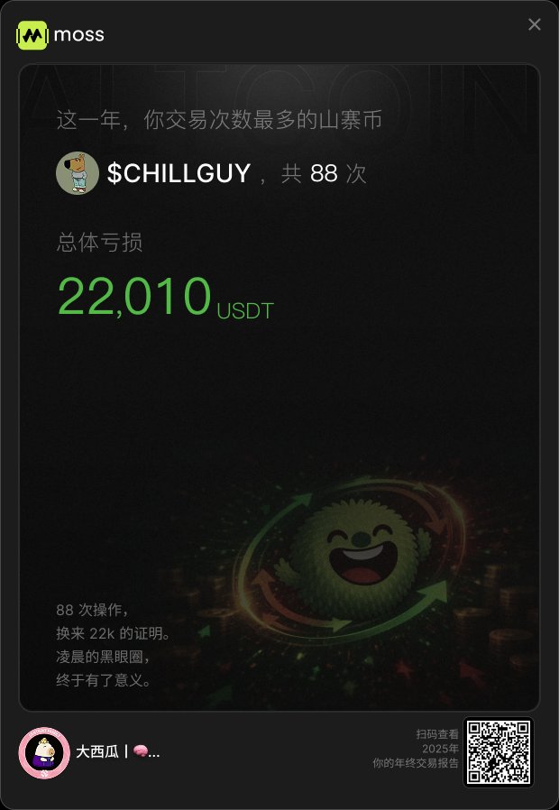 今年不妨换个方式让@MossAI_Official Moss AI为你生成一份不一样的年度交易报告,它不是冰冷的数字堆砌,而是一个懂投资、懂情绪、甚至还会吐槽的 AI,为你写下的交易人格画像