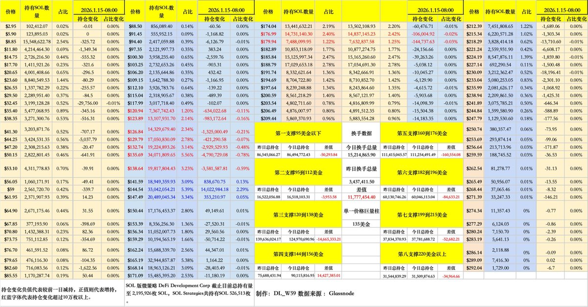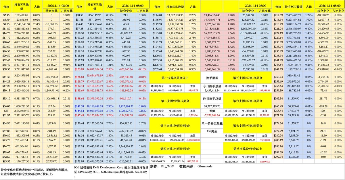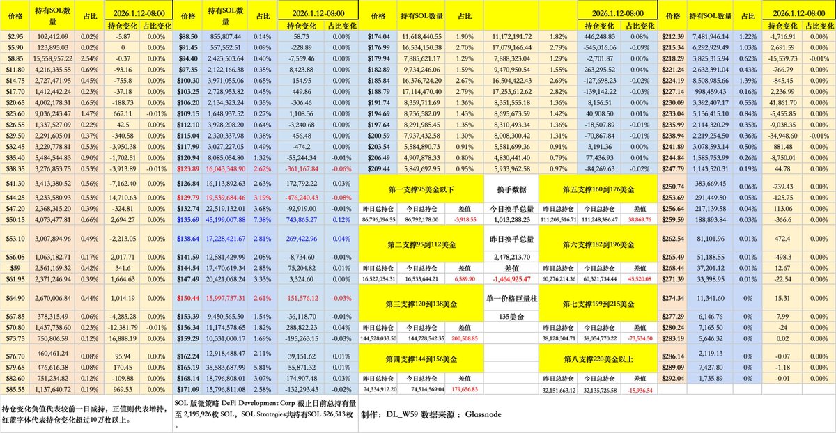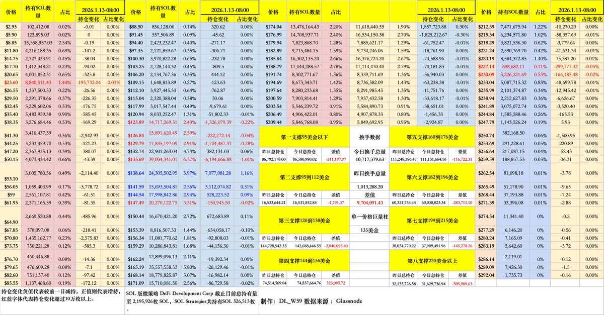 $SOL URPD数据分析( 1月12日至1月13日早上八点)把握链上情绪