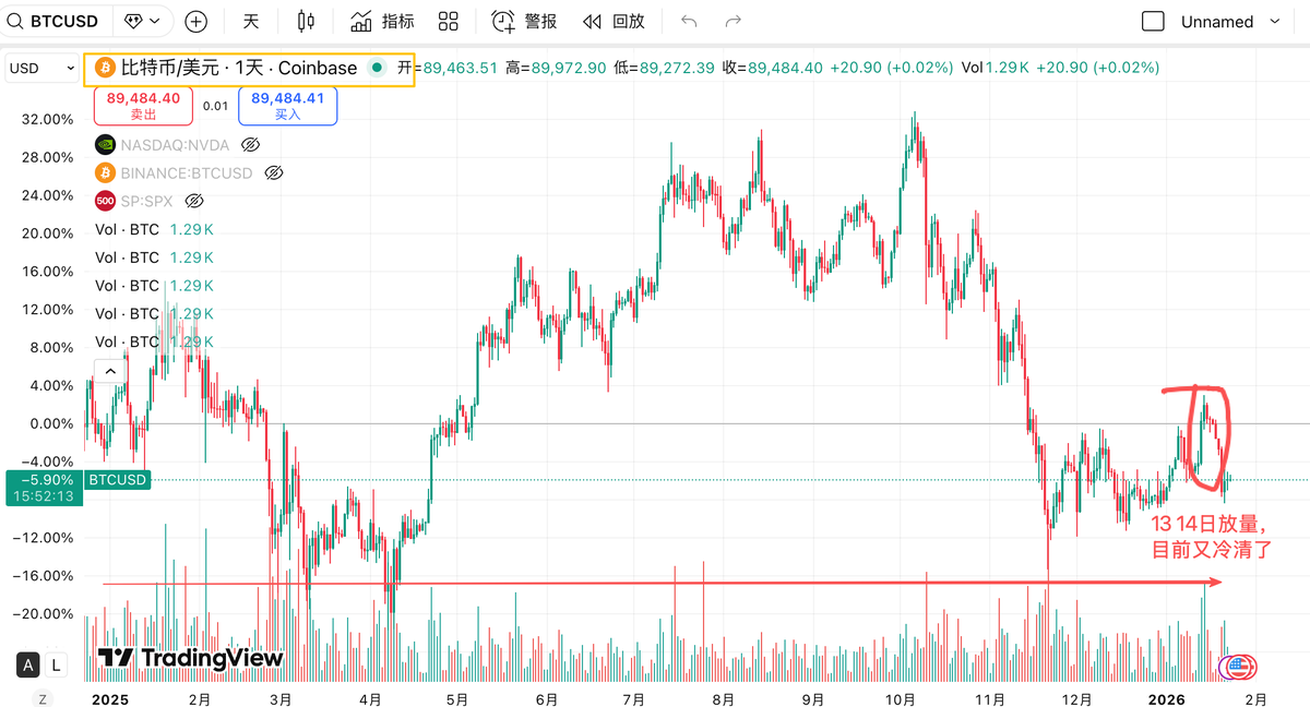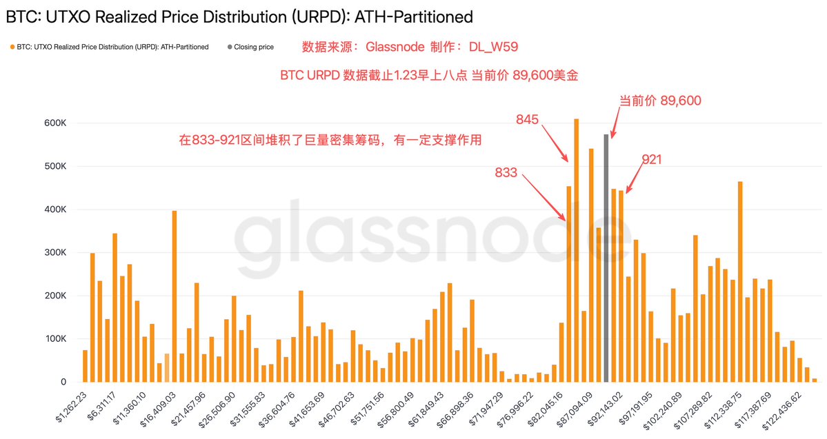 来看 $BTC URPD数据,前面833-89,600左右的筹码都换手堆积在90,50-92,100区间了,或可能在896-90,880这里形成支撑。