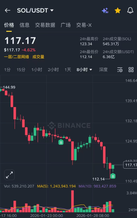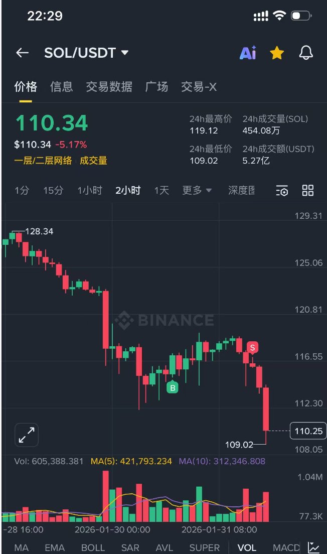 我自己操作,我在126左右买了sol,刚刚116附近又补仓了。