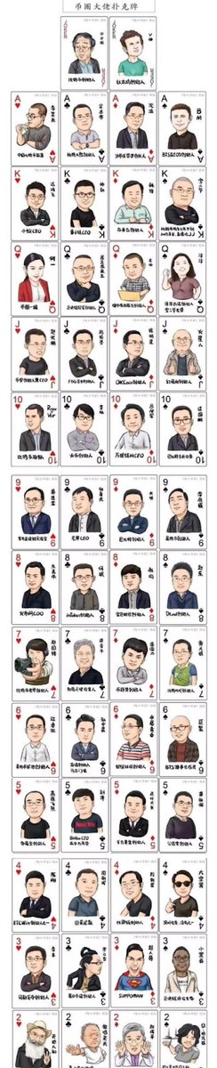 中间来一波回忆杀吧,当时火爆的币圈大佬扑克牌,年代有点久远了,所以图片可能不一定100%清晰准确。小伙伴们看个乐吧。那时我还去加了一波各个大佬联系方式,只不过我是个新人。
