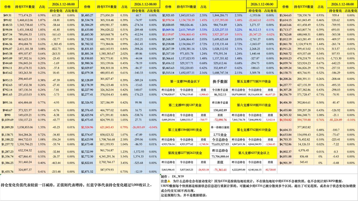 $ETH URPD 数据分析(1月12日至1月13日早上八点)把握链上情绪