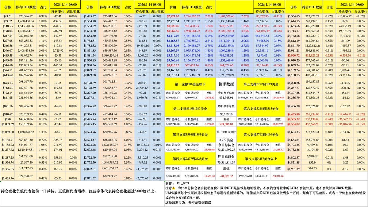 $ETH URPD 数据分析(1月14日至1月15日早上八点)把握链上情绪