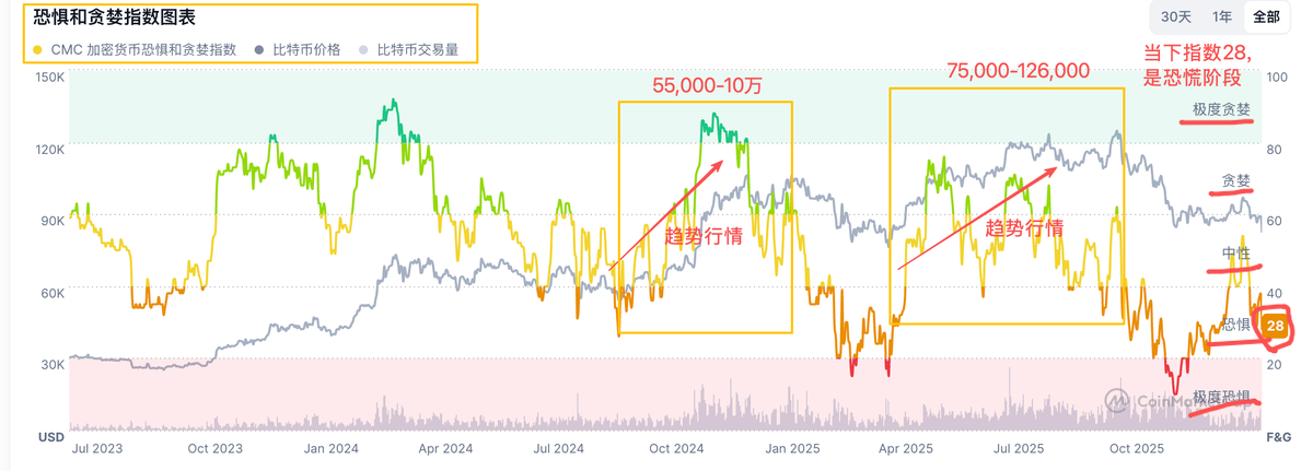 图中很明显看到这就是恐慌到中性到贪婪甚至极度贪婪的指数变化。说直接就是在恐慌或极度恐慌阶段抄底,到贪婪阶段出售。再等下一次趋势行情机会
