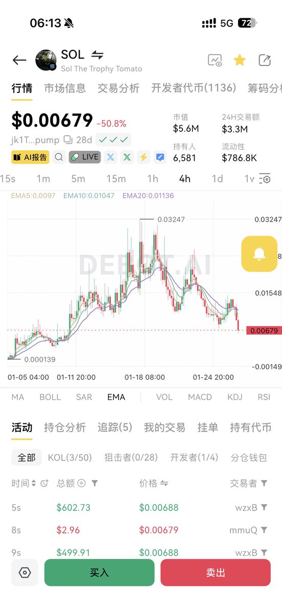 $SOL 逐渐从铜狗 $COPPERINU 和 $MOLT 的阴影中走出来,30m高点最低跌到600多k现在回到3m附近。