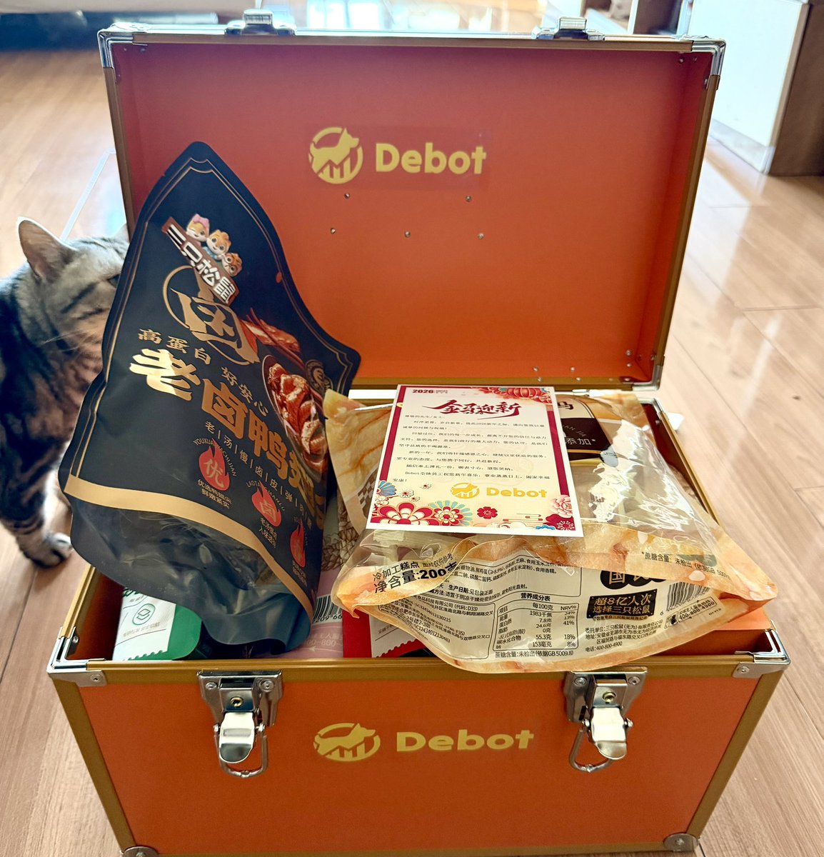一早起来就收到了 @Debot_Official 投喂的三只松鼠零食大礼包,加上箱子估计有20斤,超多零食。