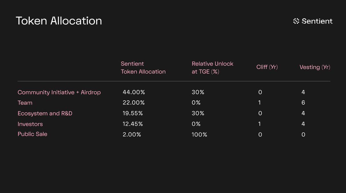 一觉睡醒看到sentient是币安钱包的这期打新 而且前天还公布了代币经济学,看着反应比较大的是百分之2的公售。