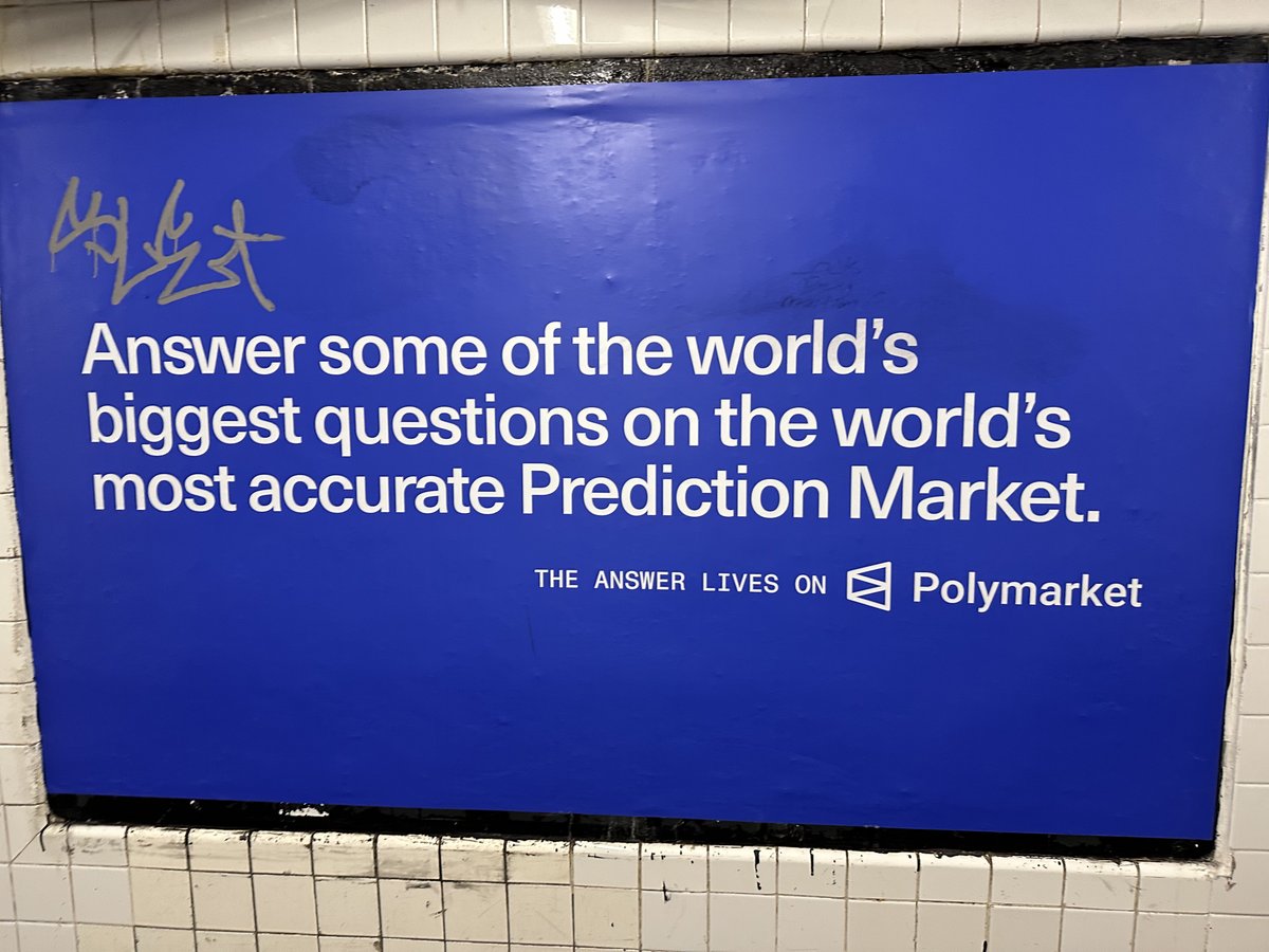 地铁站随处可见 @Polymarket 的广告。最搞笑的美国ip是被禁止的,只能翻墙使用,或者申请排队等待(我今天申请前面有70万人)。有空多刷刷交互吧,推特上的教程也很多了,我现在就是两个平台对刷。