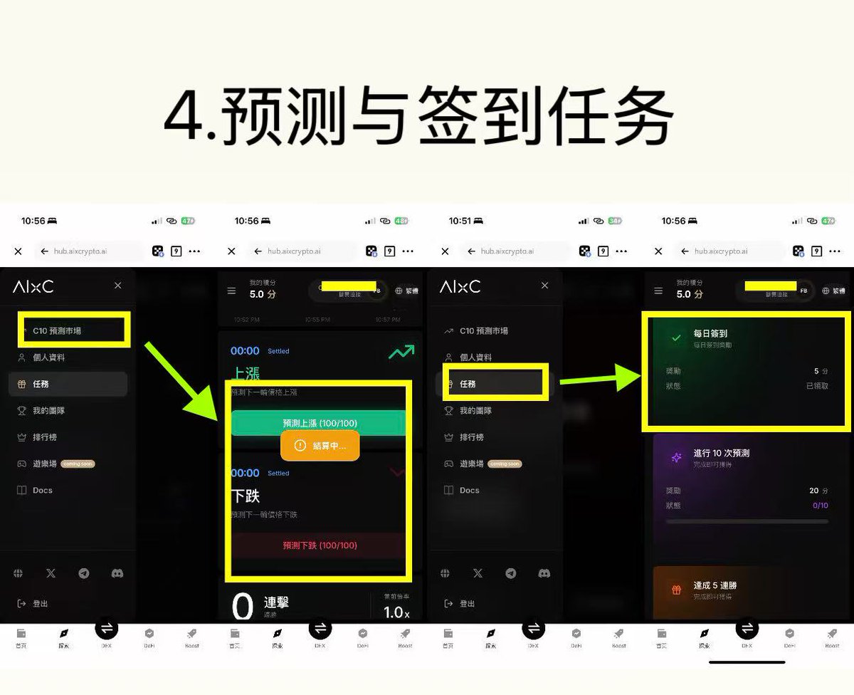 一共两种玩法: 首先是预测涨跌,每天100次来拿积分 然后是发推,并不用发项目相关内容,只需推文里