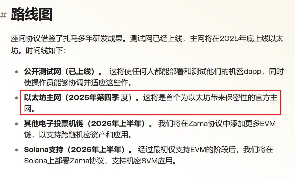 并且,刚刚在布宜诺斯艾利斯结束的 Devconnect (11月17日-22日),Zama 和 Inco 在 11月19日 联合举办了 "Encryption Day"加密日活动。在现场的技术路演中,Zama 团队展示了隐通过私区块链协议)的最终主网架构。通常在 Devconnect 这种全球开发者大会上展示“最终架构”,意味着代码审计已接近尾声,距离部署(TGE)通常只有 3-6 周的时间窗,这与 12 月底时间线是吻合的。