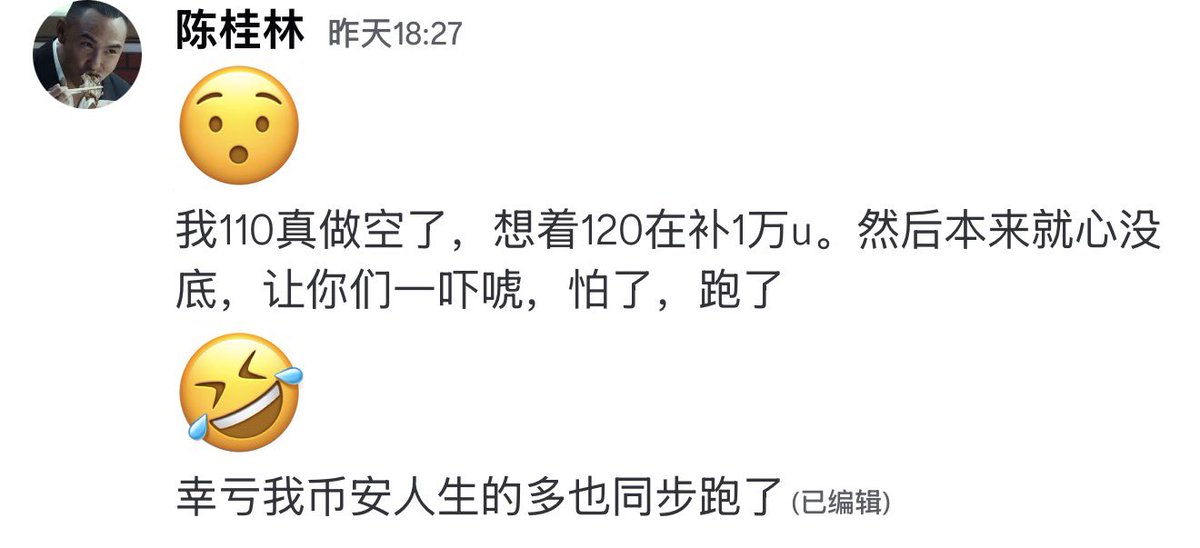 首先,他自己用自己的资金,执行自己的判断,然后为自己的行为负责,我觉得是一点问题都没有的;他不是带单老师,也不是做返佣,不欠任何人什么东西,喊单喊的也是币圈第二的核心资产,更是一点毛病没有;