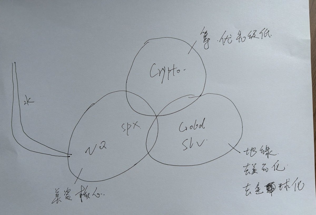 2,逻辑上可以稍微简单粗暴的这样去假设,以七仙女为代表的美股是币圈的BTC,金银是币圈的ETH,那么加密就是币圈的山寨,轮动逻辑虽然在币圈已经失效很久了,但是在这个大圈子不会失效。