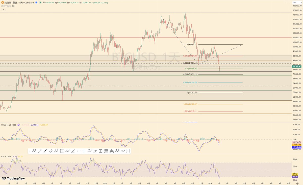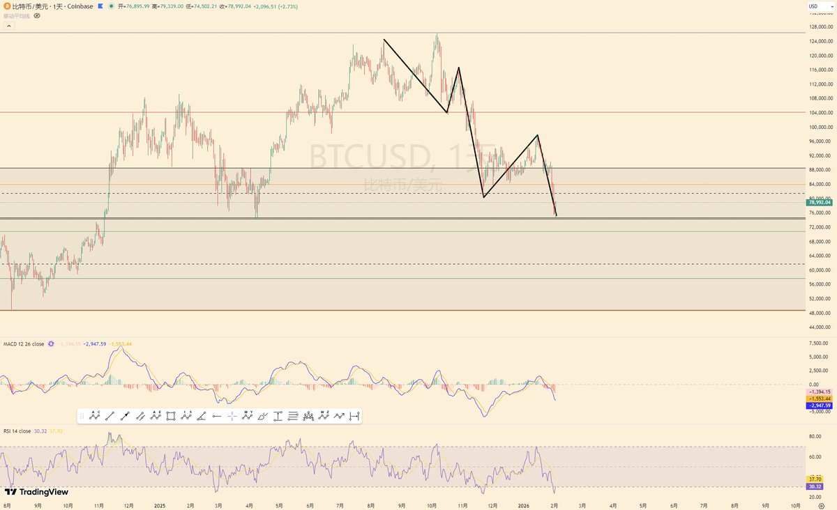 3,这里很重要,暂时认为没有黑天鹅的情况下,74上下5000刀基本就是阶段的底部了;