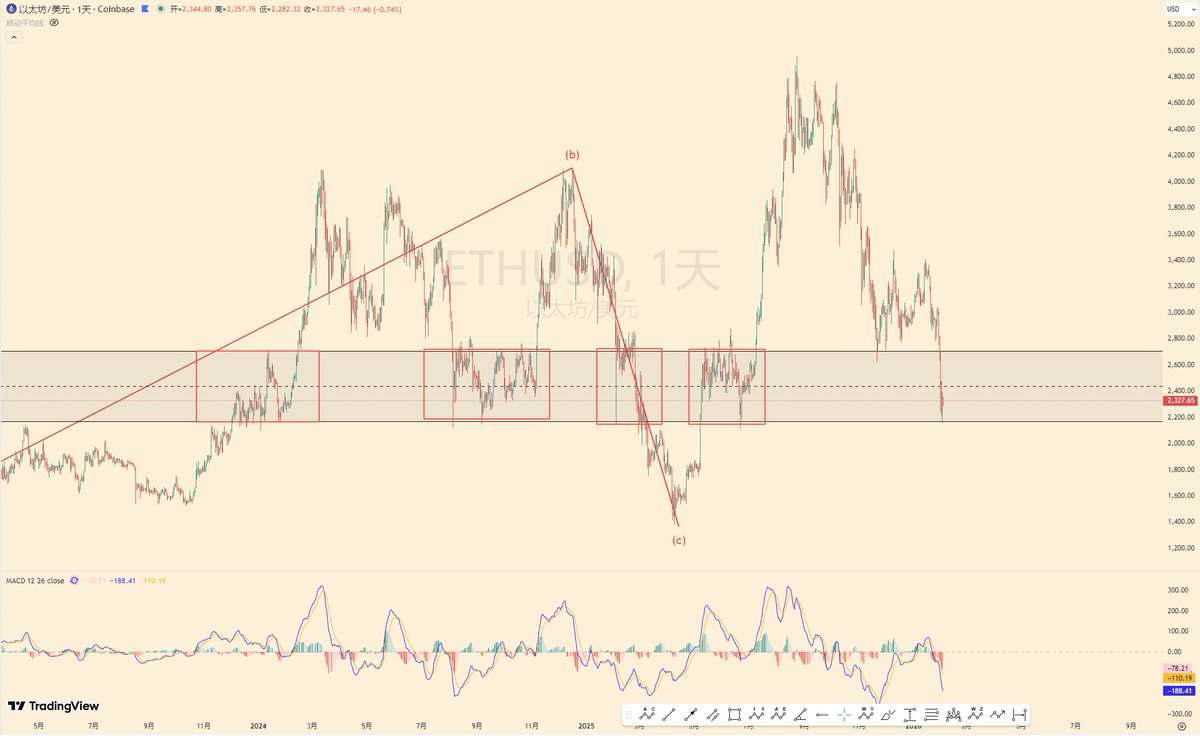 2,假设1400是ETH的3-1浪的起点的话,那么从最近来看,这个区间是ETH起涨之后的第一个换手区;