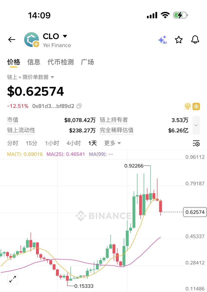作为 Sei 的旗舰 DeFi 项目 YeiFinance, $CLO 最近的表现确实很亮眼,走了一段很健康的上升曲线,不是那种一天拉完就没声的走势。