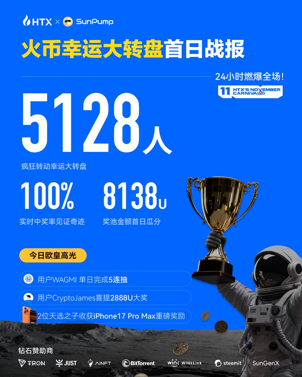 【火币HTX11月狂欢节 · 首日战报】玩疯了!