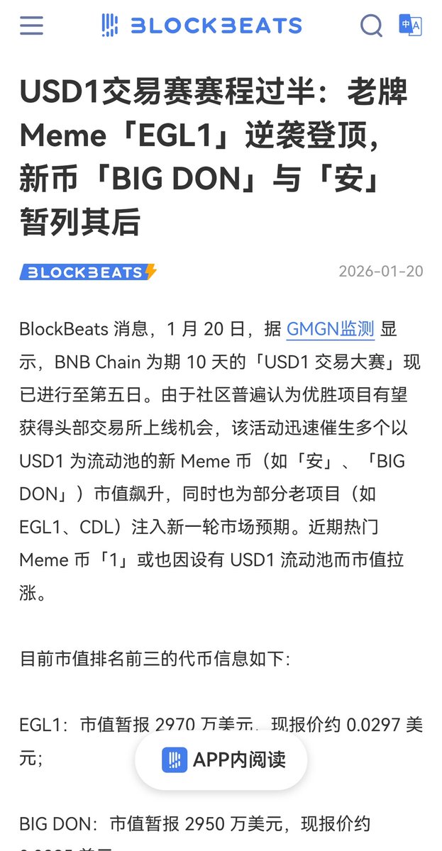 毫无悬念 #EGl1 又获得交易大赛的第一名,币安基金会买入3.3万USD1的老鹰,这个项目后面肯定还会搞事情。