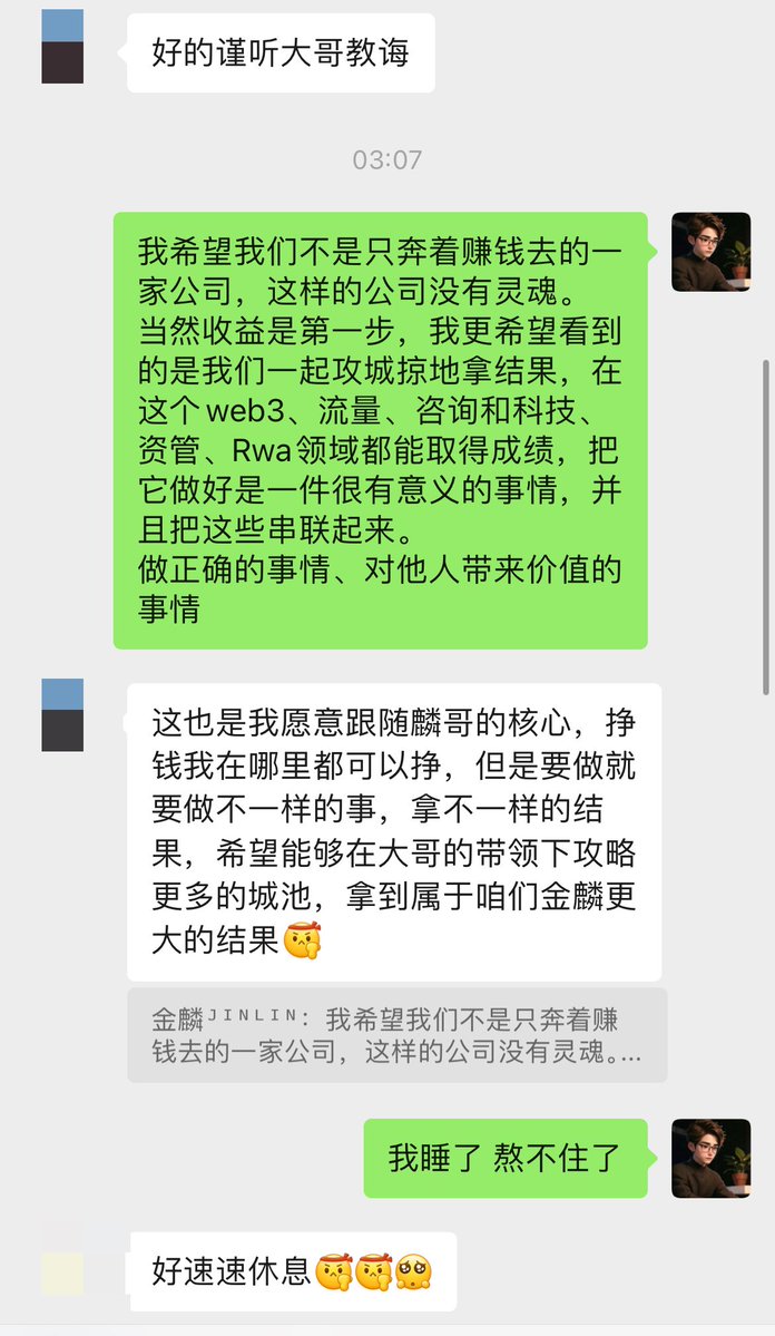 5、基础的自律跟执行力是我们年轻人唯一有的资本跟财富,家里面没有资源,没有背景,一定要严格要求自己,一定要自律,一定要提升你的执行力,我讲的东西必须马上执行,你不做或者做不好就是不认同我,那就不适合和我一起创业。