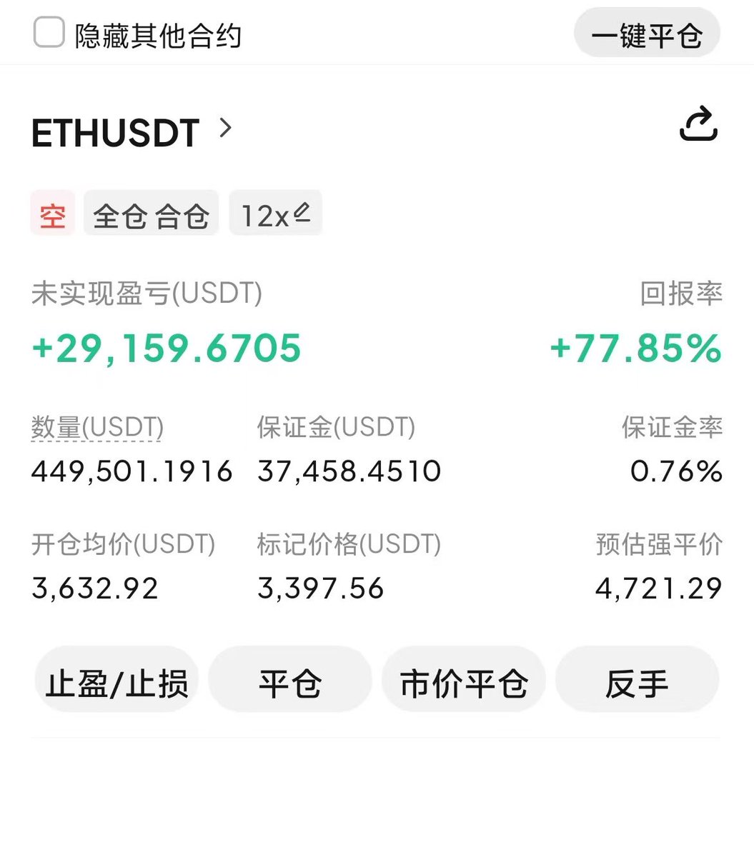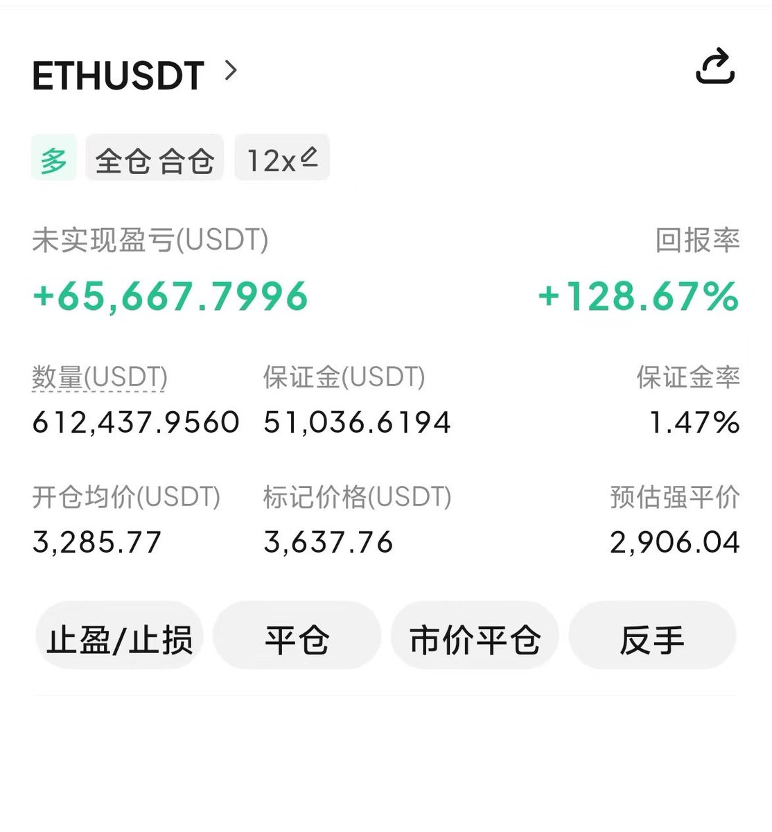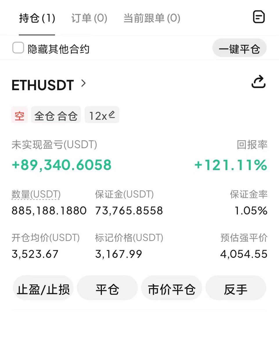 按照他的投资理念,长远看到ETH的价值,并且在3000附近做多,虽然说人的高度不同看到的景色就会不一样,但是易老板的这波仓位的操作为什么没有知行合一的把斩杀线放到1000以下呢!