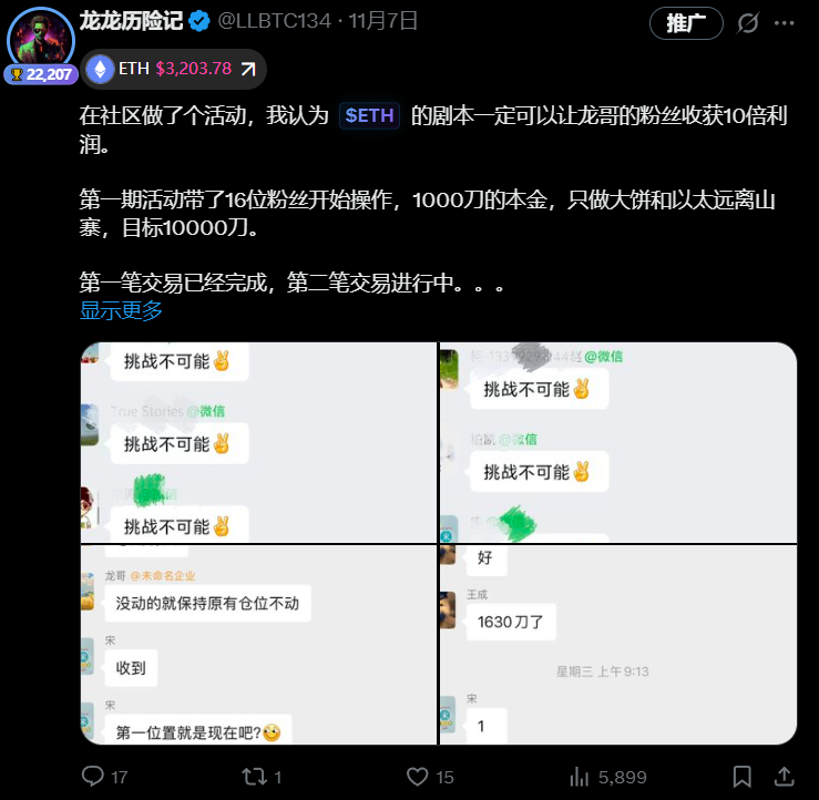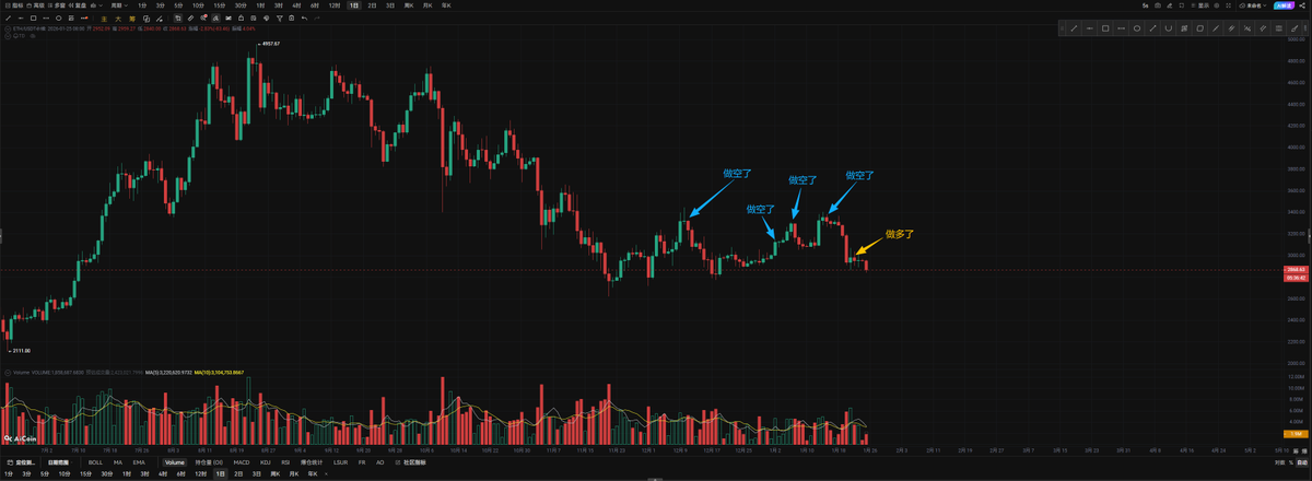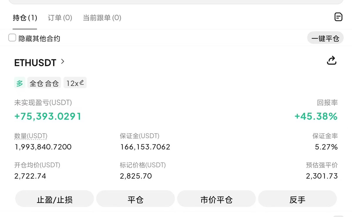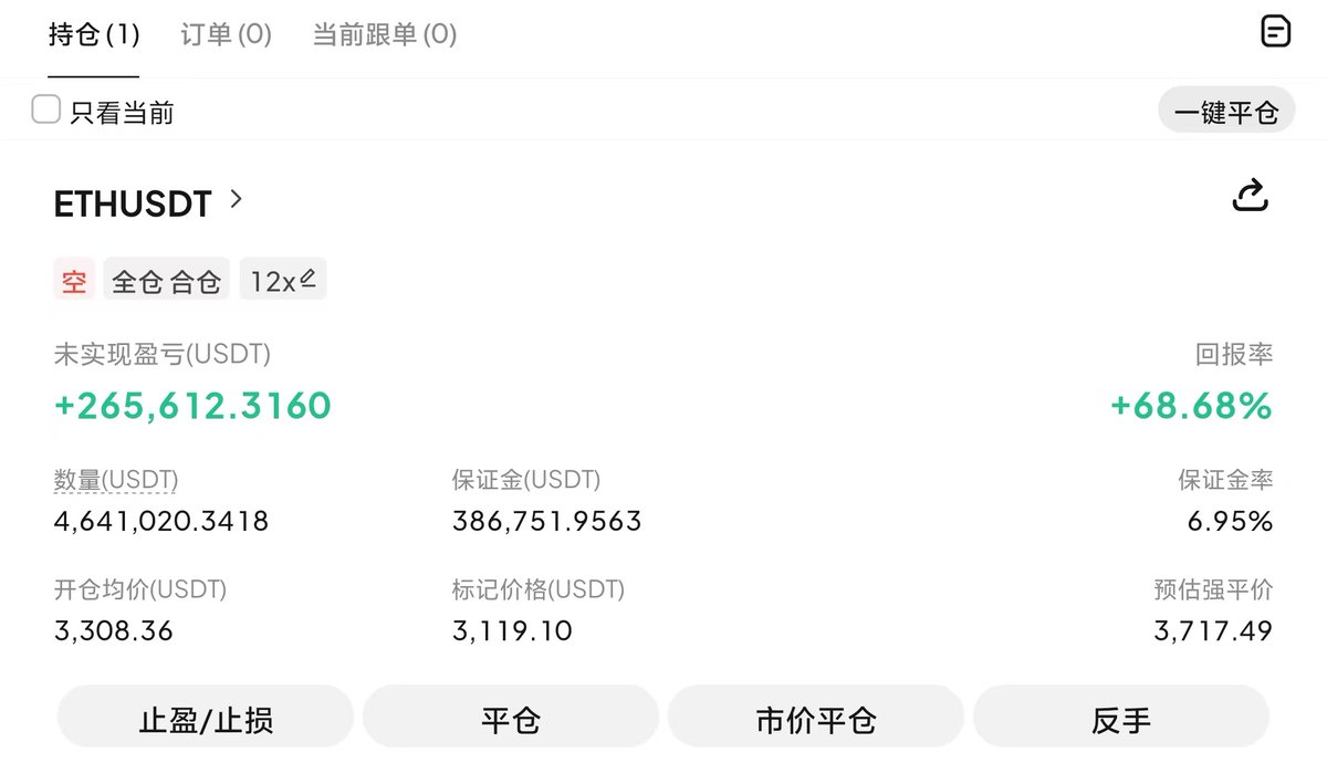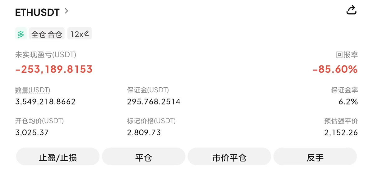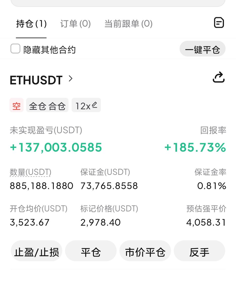 按照他的投资理念,长远看到ETH的价值,并且在3000附近做多,虽然说人的高度不同看到的景色就会不一样,但是易老板的这波仓位的操作为什么没有知行合一的把斩杀线放到1000以下呢!