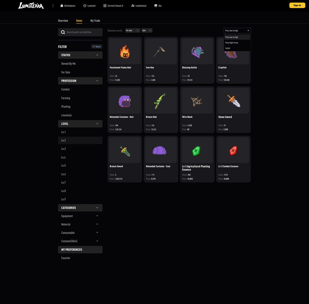 We’re working on an update to the Lumiterra Marketplace.